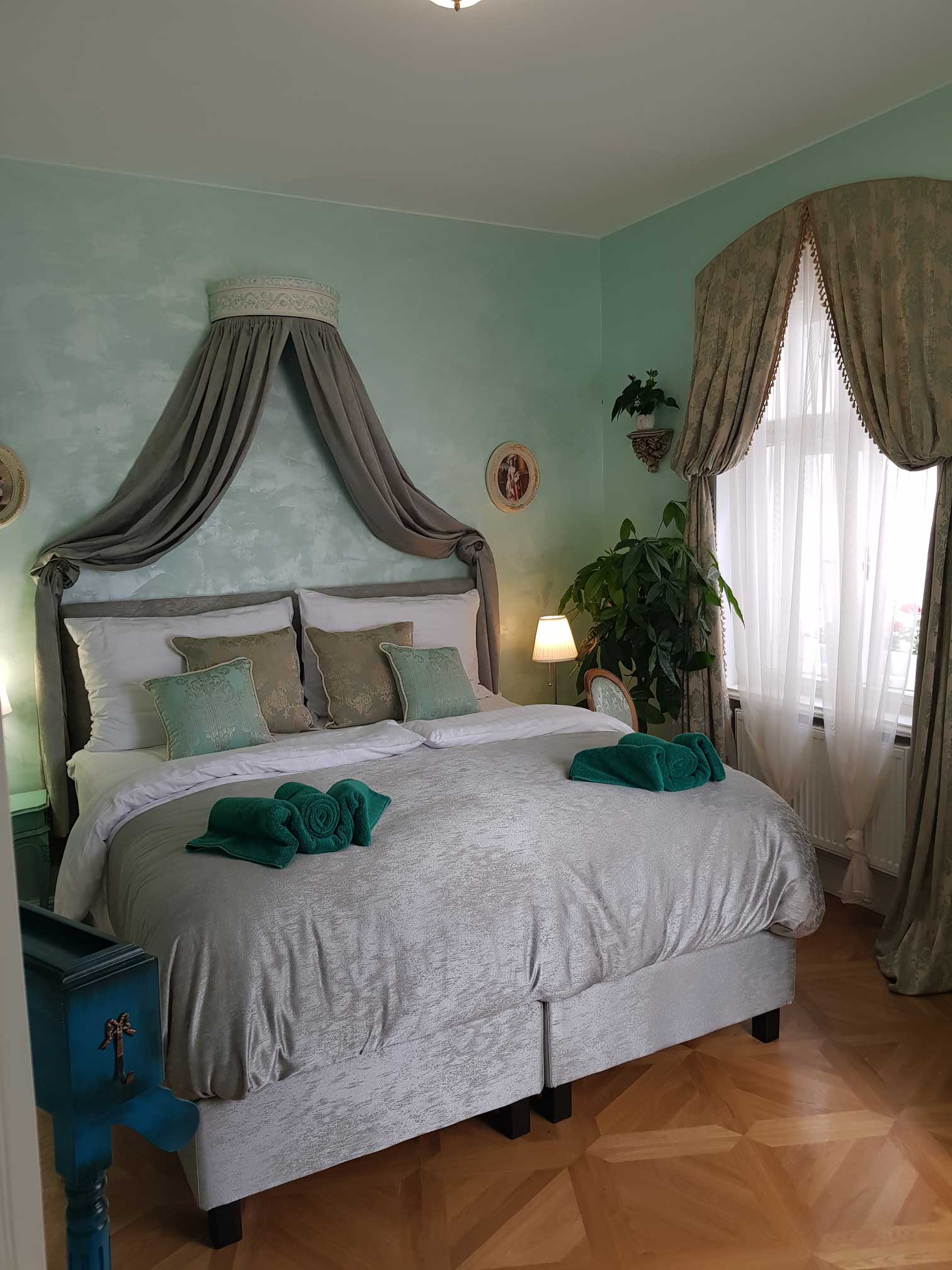Ponorte sa do pokojnej atmosféry Zelené izby, kde krása prírody spája luxusný komfort. Táto elegantne navrhnutá izba ponúka tichý únik, s jemnými zelenými odtieňmi a prírodnými materiálmi, ktoré vytvárajú harmonické prepojenie s okolitou krajinou.